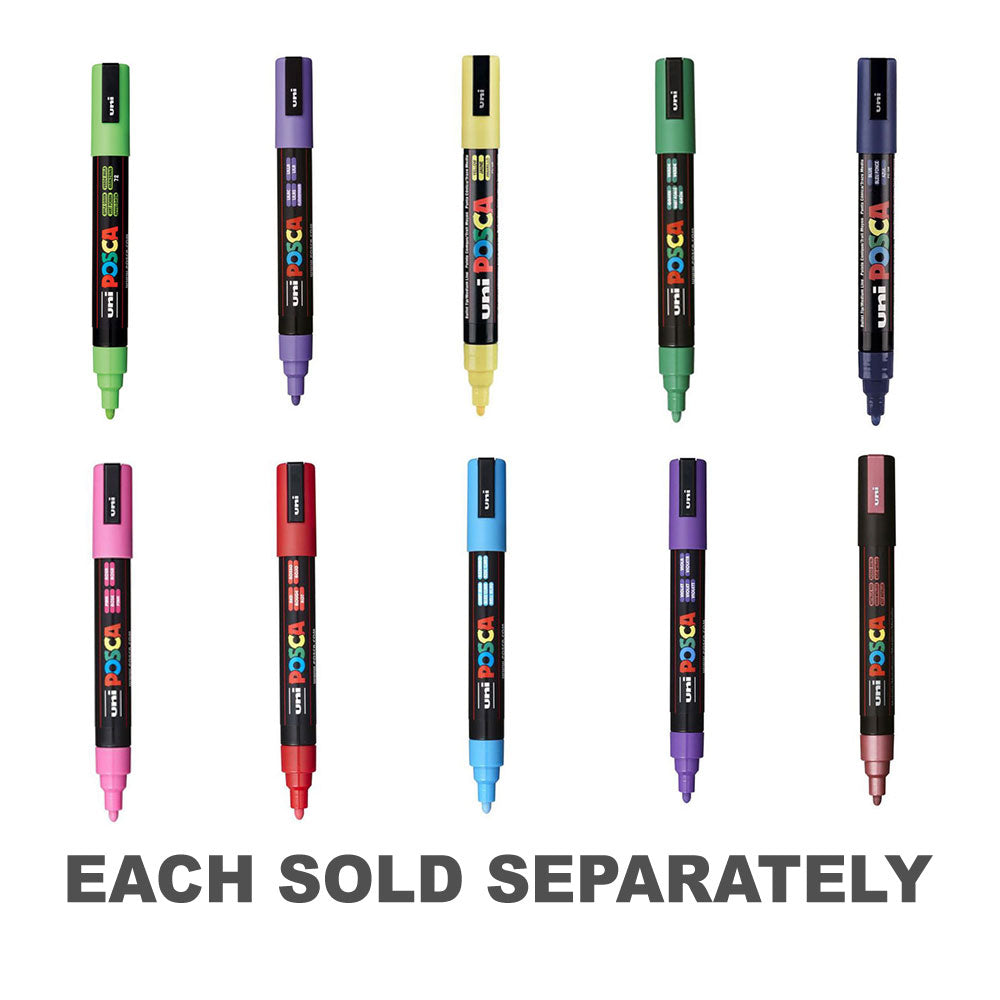 POSCA-akryylimaalimarkkerit ovat myrkyttömiä, vesipohjaisia, ja niitä voidaan käyttää melkein millä tahansa pinnalla. Alkoholi- ja liuotinvapaa, läpinäkymätön maali kattaa hyvin, on sekoitettavissa ja kuivuu nopeasti. Käytetään paperille, lasille, pahville, puulle, posliinialle, metalleille, tekstiileille, keramiikalle, muoville ja muille - kaikki ilman pohjustusta. Niitä voidaan jopa käyttää kuin vesivärit sekoitettuna veteen ja harjaan. PC-5M: n keskipitkän luodin kärjen merkki on 'monikäyttöinen' koko POSCA-alueella. Luo siistiä ja tarkkaa linjaa, ja se sopii erinomaisesti väritykseen ja kirjoittamiseen.