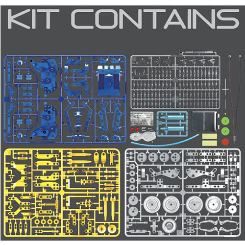 Här är ett kit som är lätt att bygga och ett bra sätt att lära sig om solenergi och hydarulik. Det finns 12 olika modeller att bygga, inklusive en krokodil, T-Rex, elefant, apa, struts, skorpion, grävmaskin och gaffeltruck.