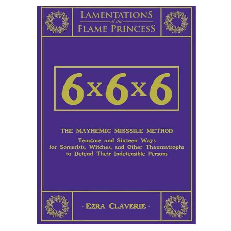- Sex den här boken förvandlar en bekant, låg nivå spell till något du kanske inte vill att dina allierade, än mindre dina fiender, ska kasta. 6x6x6: Mayhemic Missile-metoden (tenscore och sexton sätt för trollkarl, häxor och andra thaumatrophs för att försvara sina oförsvarliga personer) är ett magiskt tillägg för användning med klagomål om flamprinsessan och alla andra traditionella svärd-och-sorderstabeller rollspelning spel.
