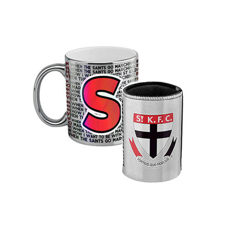 Metallic Can Cooler & Mug Gift Pack - Team Logo Design - Passar en 375 ml burk med 330 ml kapacitetsmugg - öppen presentboxförpackning - Inners 4, Ytters 24 - Officiell AFL -varor