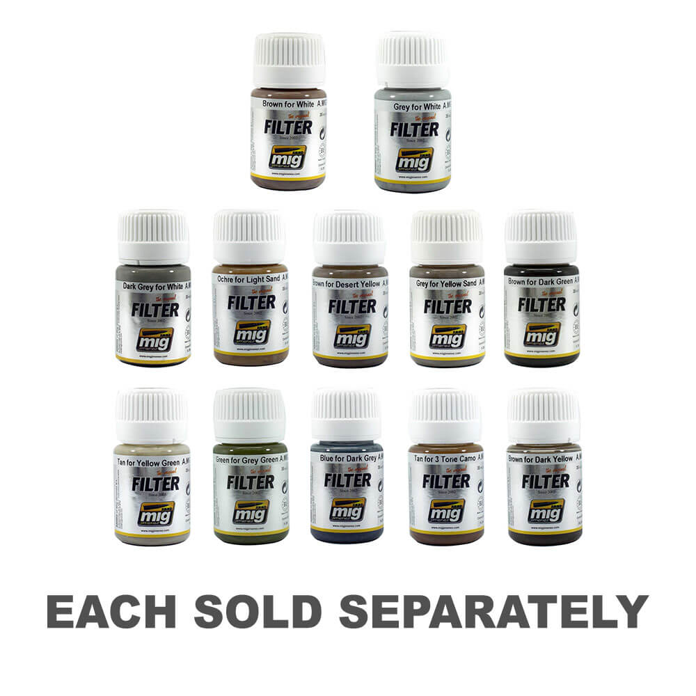 Filtrera enkelt och redo att använda direkt på din modell. Detta filter är speciellt utformat för användning på ljusa eller vita vinterytor som tankar, rymdskepp, ljusfärgade flygplan eller fordon från FN. Använd filtren genom att fukta en borste och applicera den utan att översvämma ytan, för att berika nyanser i dina modeller, förena kamouflage eller markera områden med en annan ton. Med dessa produkter kommer vi att undvika att blanda färger, leta efter rätt utspädning eller leta efter rätt färger för vårt fordon. Dessa filter är emaljbaserade och kan rengöras eller utspädas med luktfri emalj tunnare.