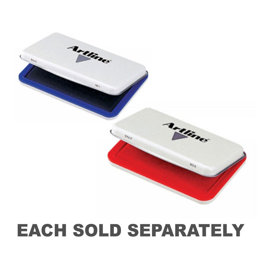 Kvalitetsstämpeldynor med metall- och plasthölje och en tygbläckmatta. Vattenbaserat bläck, färgämne bläck, påfyllningsbart. Artline Stamp Pad som inte torkar ut när det lämnas öppet under en längre tid.