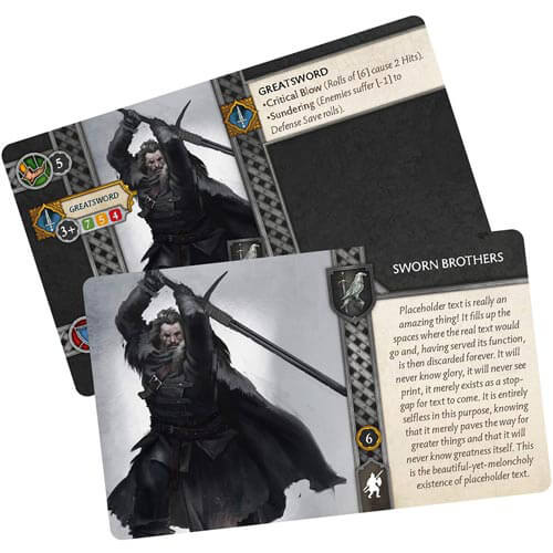 - Innehåller: 12 svurna bröder miniatyrer; 1 Titta på Captain Miniature; 1 enhetskort; 1 bilagakort; 1 rörelsebricka