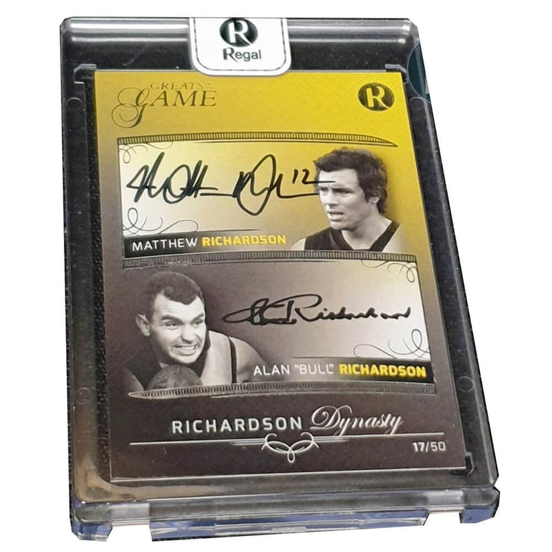 - Regal Trading Cards är stolta över att tillkännage utgivningen av Richardson Dynasty Signature Card, tillsammans med en 2021 Greats of the Game (Update) Tribute Card of Alan "Bull" Richardson.