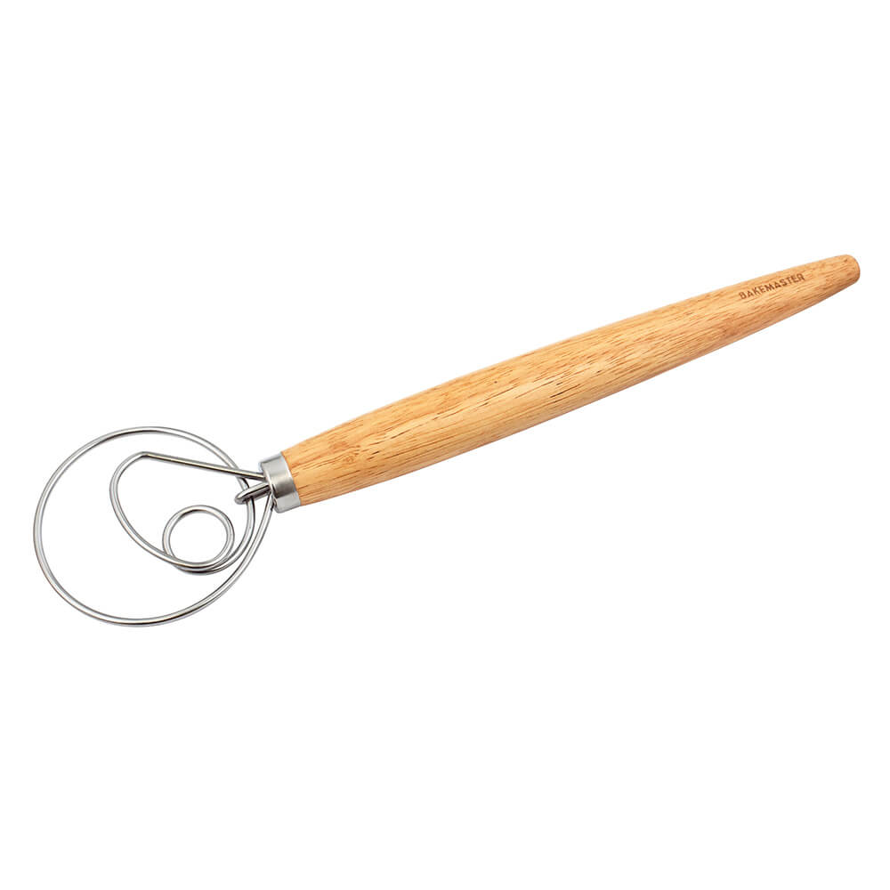 En traditionell deg visp perfekt för att blanda torra och våta ingredienser och förbereda degen före knådning. Den har ett robust trähandtag och flöde genom rostfritt stål visp utformat för att kombinera ingredienser försiktigt och jämnt.
