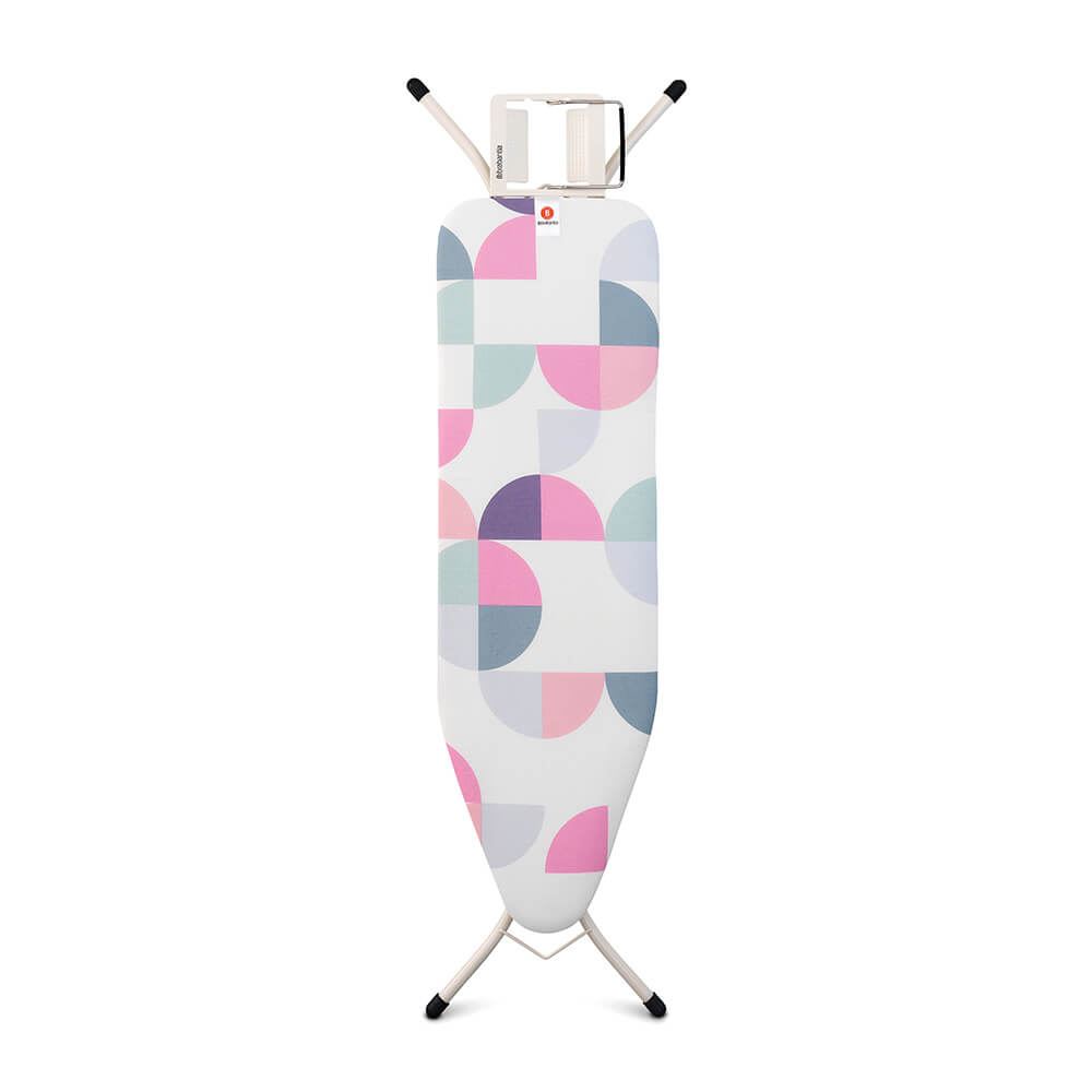 Bred bänkskiva som är lämplig för alla populära ångstrykjärn. Ergonomisk design justerbar till 7 höjdinställningar (69 cm-96 cm).