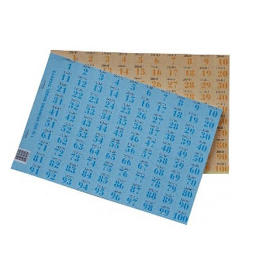 Ark är 360 mm x 240 mm och innehåller 64 individuellt perforerade biljetter på varje ark. Det finns fem arkfärger per bok - grön, blå, röd, orange och lila. Det finns totalt 50 ark i rotationsfärger i varje bok som ger dig totalt 3 200 biljetter. Lämplig för små lotterier som kött eller skaldjur eller för att köra flera lotterier på en natt.