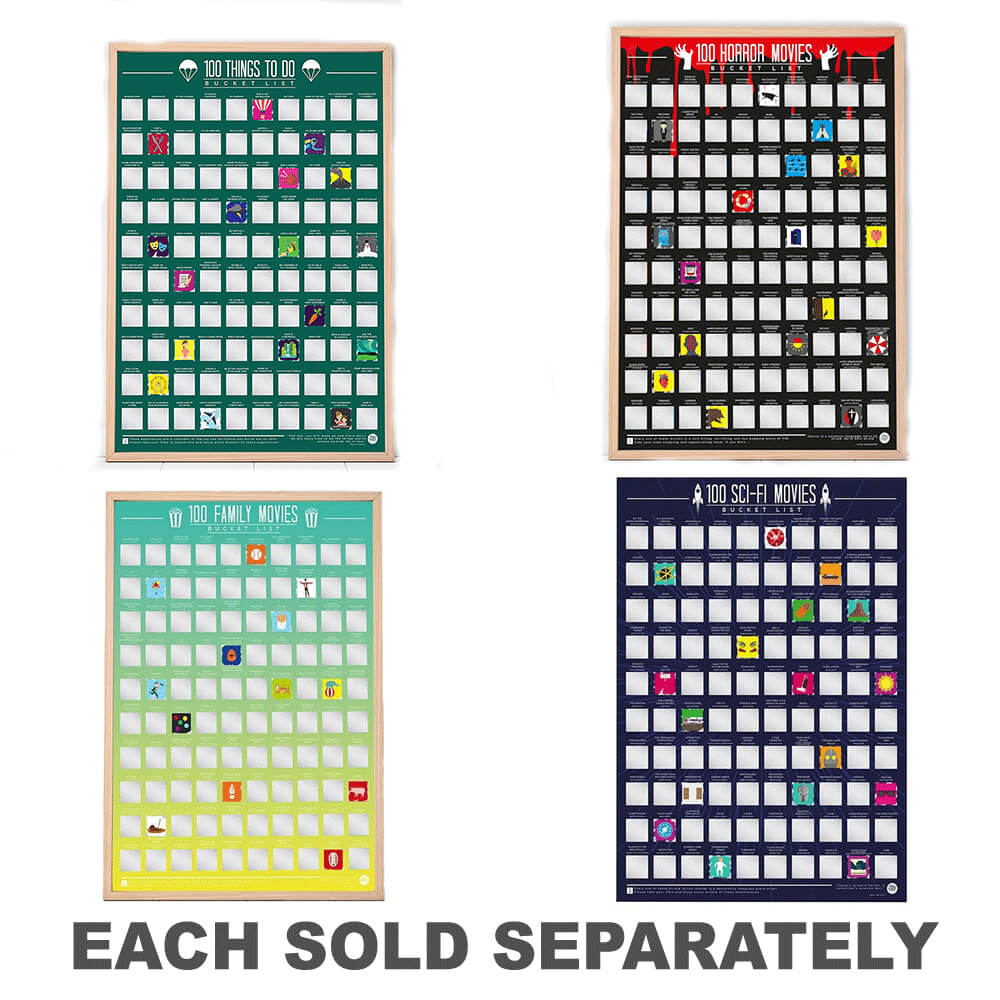 Från Star Wars till Soilent Green, Mad Max till Matrix, denna Ultimate Sci-Fi Scratch-affisch är den definitiva hinklistan med 100 filmer som alla sci-fi-huvud behöver titta innan de dör.