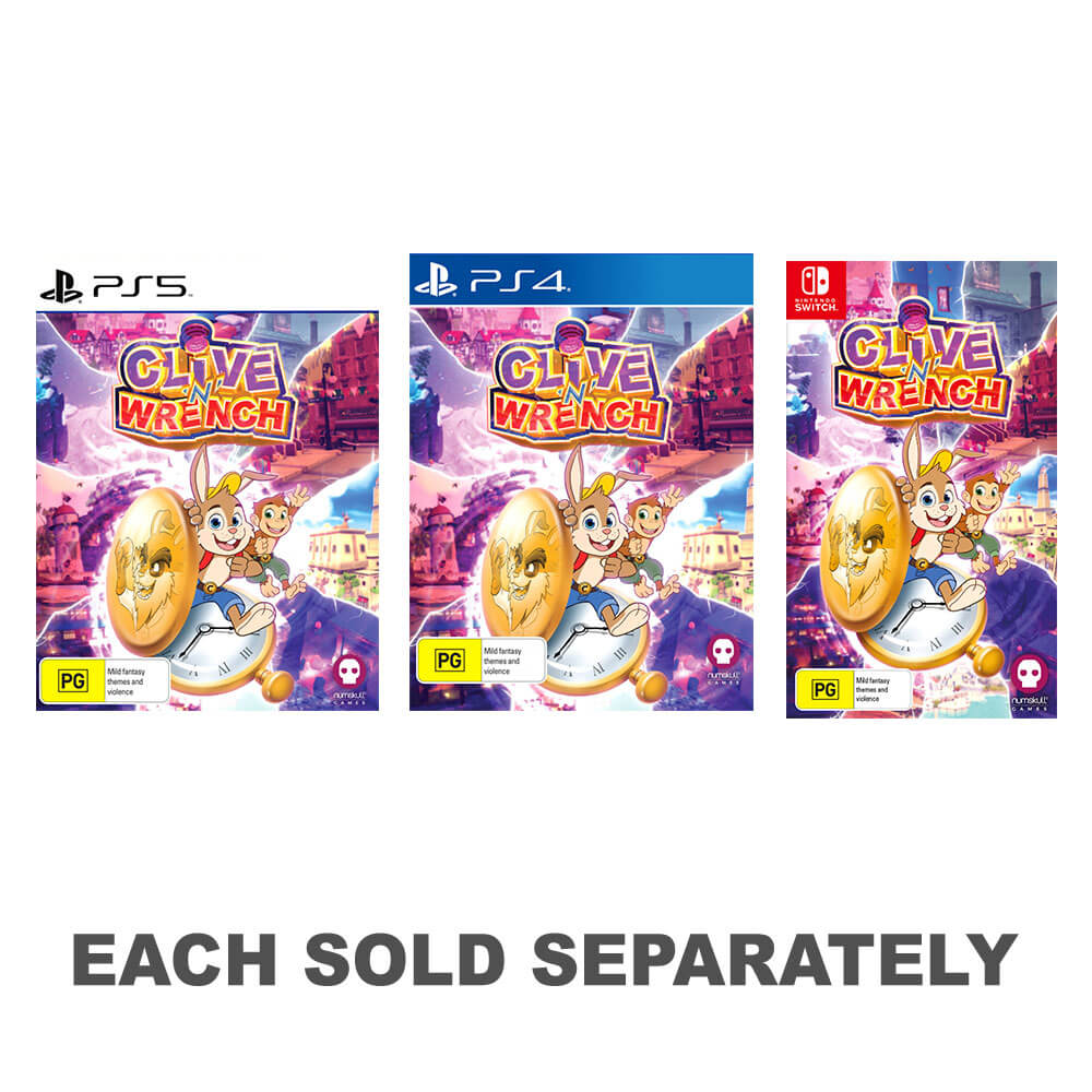 Clive 'n' Wrench är en 3D -plattformsspelare med Clive, en kanin och skiftnyckel, den bokstavliga apan på ryggen. Ditt äventyr tar dig att skada genom tid och rum i ett kylskåp från 1950 -talet på en heroisk strävan att hindra den tyranniska Dr Daucus och stoppa hans onda planer.