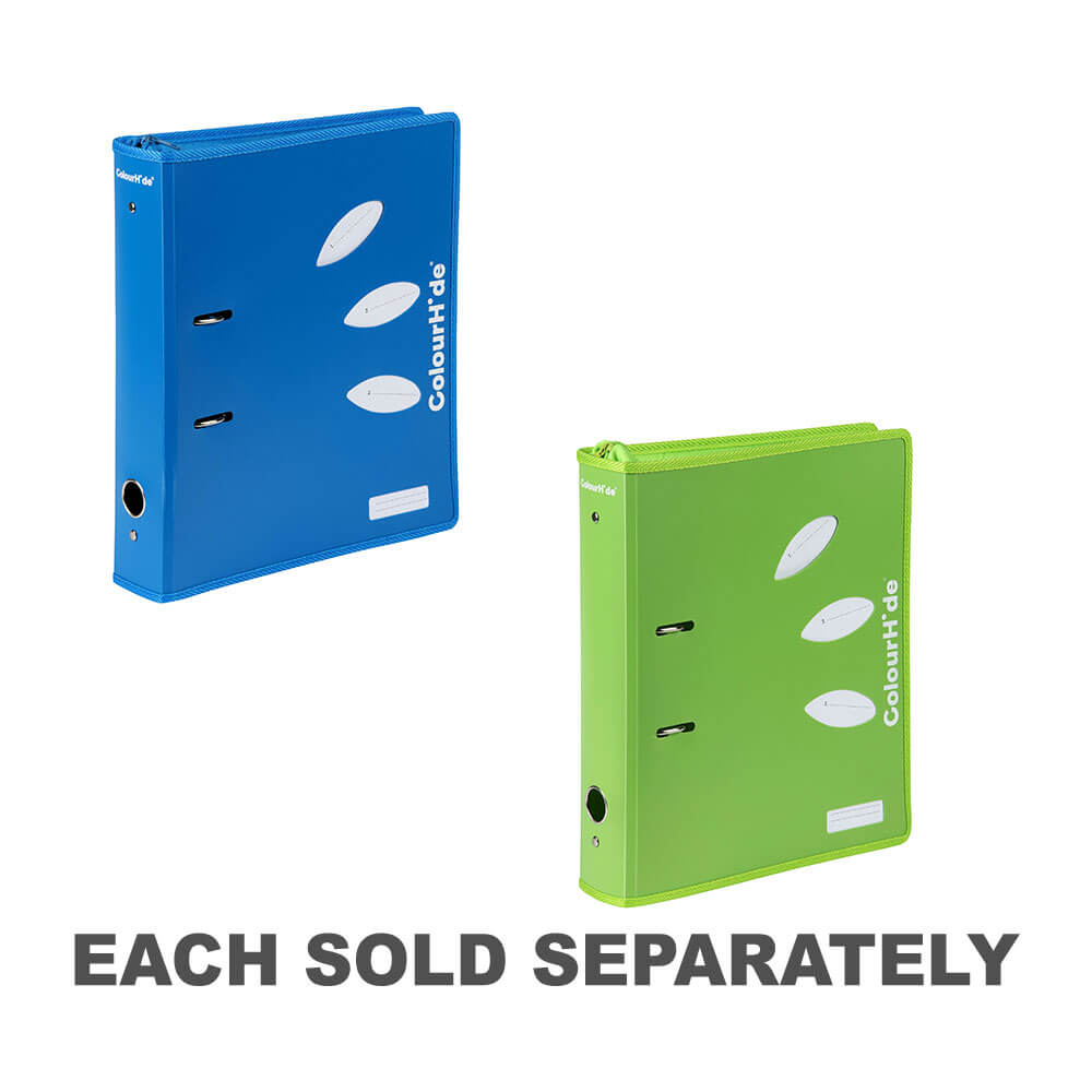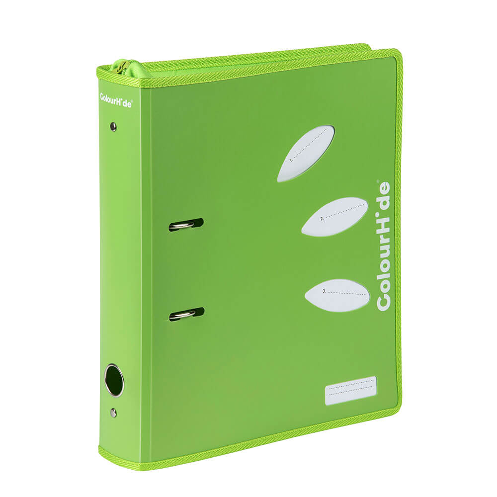 Lever Arch File - Colourhide - A4 - 70mm - Zipper - Grönt Denna 70mm blixtlåsbåge har designats och tillverkats med långvarigt polypropylenmaterial, är fuktbeständig och har en dragkedja för extra säkerhet