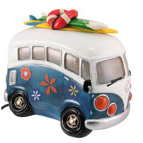 Vackert gjort i form av en klassisk Combi -skåpbil, denna söta bordslampa är helt enkelt underbar i blå och vita färger. Lampan är gjord med en kombination av polyharts och glasfiber. Detta kommer säkert att vara en bra konversationsstart på dina husfester.