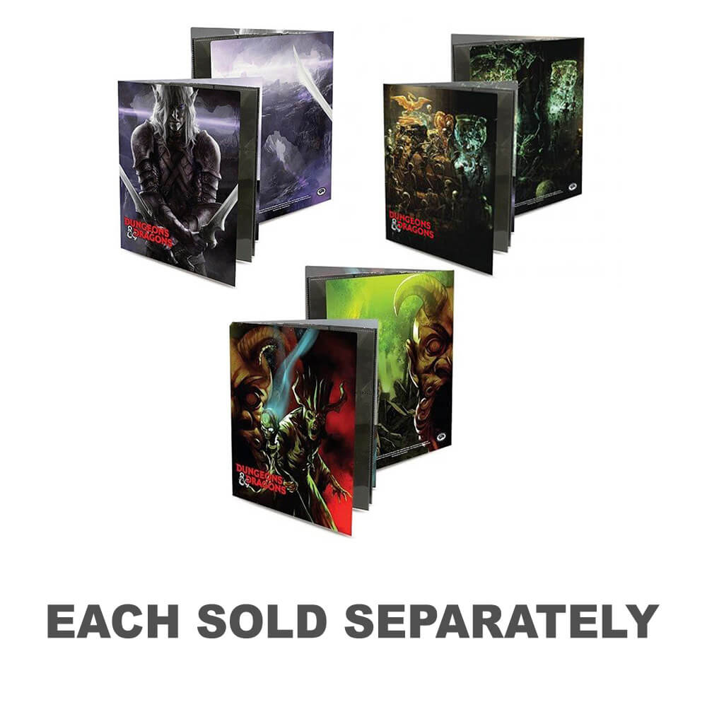 Organisera dina karaktärsark och statistik med Ultra Pro's Dungeons & Dragons Character Folio. Varje folio är tryckt med detaljerad grafik i fullfärg med ditt favorit tema från det populära rollspelet Dungeons & Dragons. Arkskyddssidor i folio kan rymma upp till tio 8 1/2 "x 11" teckenblad och två 18-pockningsark har 36 standardstorlekskort. Omslaget till folio inkluderar inre fickor i främre och bakre.