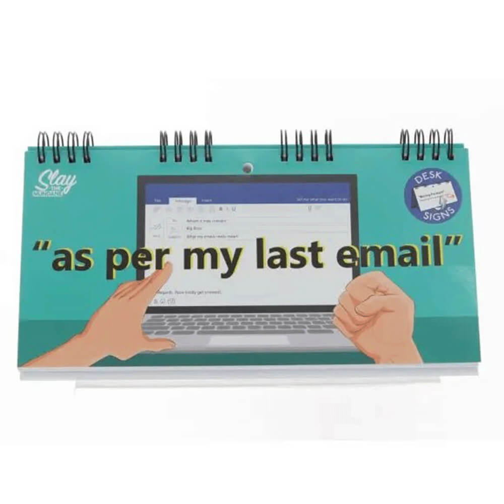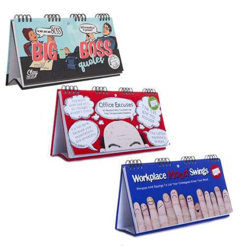 - Denna fräcka flipbook har ett vikstat, så att du kan placera den på skrivbordet, dina chefers skrivbord ... (eller var du verkligen vill)