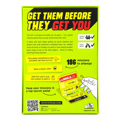 Med över 180 olika uppdrag som kan försökas i massor av olika scenarier är detta ett av dessa festspel för både vuxna och tonåringar. Till att börja med får varje spelare en uppdragsplånbok med sex uppdragskort, som de håller hemliga för någon annan.