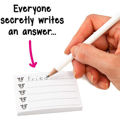 Om ditt svar är en del av majoriteten vinner ni alla kor. Jehaw! Om alla andra skriver TTAN -svar som matchas av minst en annan person, men din är den udda ut, landar du den arga rosa ko, och din besättning av kor är värdelös tills du kan ladda ner den till någon annan.