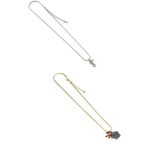 Officiella silverpläterade Harry Potter -varor av Carat Shop Silver Plated Lightning Bolt med glasögon Charm på ett halsband Halsbandet är en silverpläterad kedja som är 16 tum lång med en 2,5 tum extenderkedja. Glasögonen är silverpläterade med en guldpläterad ljusare Bult Detta halsband kommer på officiella Harry Potter -märkta kortförpackningar och visar Warner Bros -logotypen på baksidan av Carat Shop är de officiella licensierade tillverkarna av Harry Potter smycken på Warner Bros.