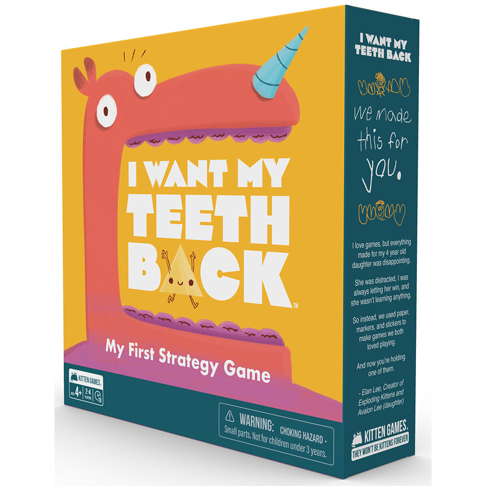 - Jag vill ha mina tänder på baksspelet: Gå med i tandräningsäventyret med 1 spinner, 1 landningsmatta, 4 meefs, 57 kort, 1 menykort och 60 tänder. Detta spännande kortsamlingsspel är packat med allt du behöver för oändligt roligt spel. Snurra spinnaren, navigera i landningsmattan och gå in på en spännande strävan att hitta Meefs förlorade tänder! Med ett brett utbud av komponenter erbjuder detta spel timmar av underhållning och spänning för spelare i alla åldrar