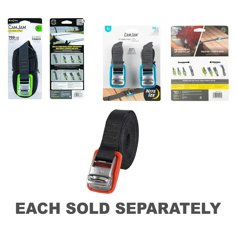- Förenkla dina bindningsuppgifter med Nite Ize Camjam-bindningsrem i den praktiska 12-fots längden, och erbjuder en mångsidig och justerbar lösning för att säkra olika belastningar under transport.