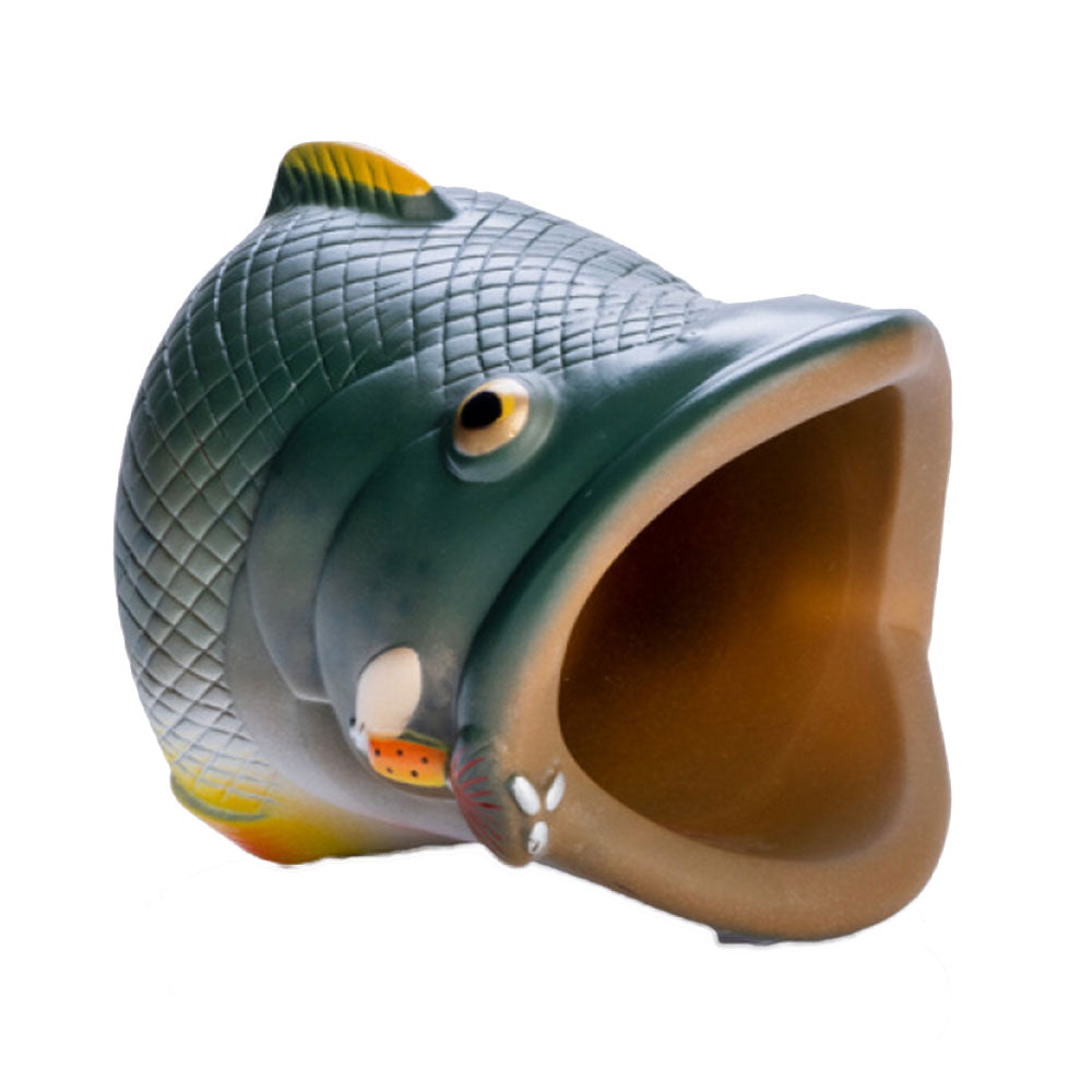 Fin-tastic largemouth bas kan kylare tillverkad av isolerande vinylfunktioner realistisk skalstruktur och fläckig grön färg. Nyhet kan kylare utformad som om bas sväljer din drink!