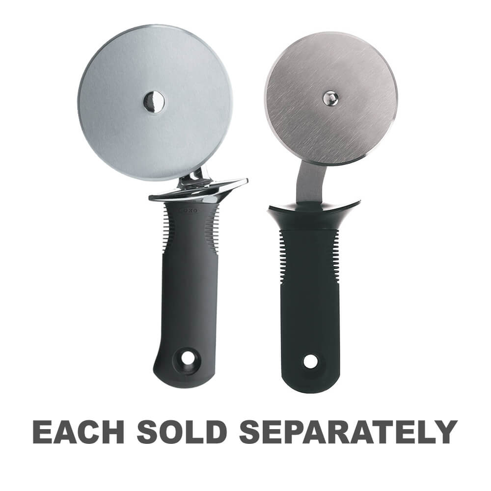 Skiv genom svamp, pepperoni och extra ost med lätthet med Oxo Good Grips 4-tums pizzahjul. Dess skarpa rostfritt stålblad skär genom crunchy skorpa och är tillräckligt stor för att rymma sicilianska och tjocka skorpapizzor. En gjuten zink tumskydd håller fingrarna borta från bladet för extra säkerhet, och det stora, mjuka handtaget absorberar tryck.