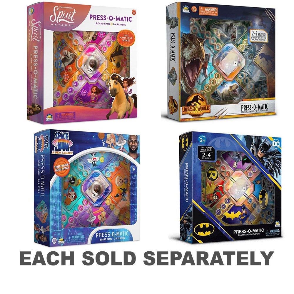 Samla familj och vänner för en klassisk spelkväll med Press-O-Matic. Tävla dina motståndare till mållinjen i detta tidlösa brädspel som är lätt att lära sig och ger timmar med konkurrenskraftigt kul.