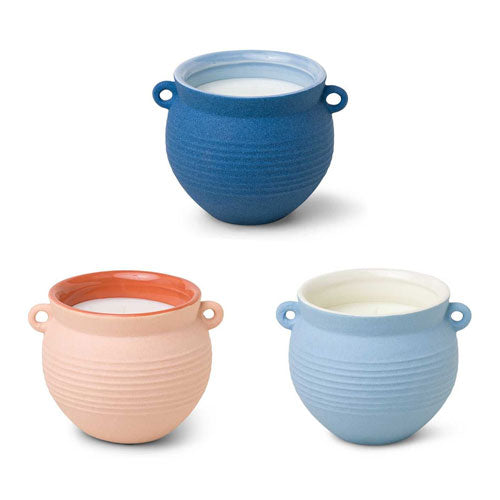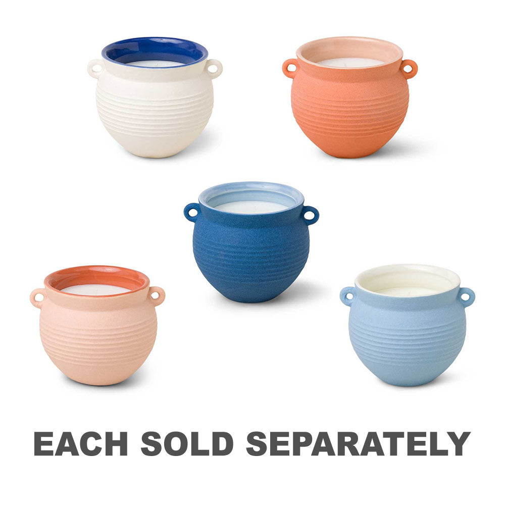 Fly till en ö i Egeiska havet med denna Santorini -samling. Påverkad av tidlös textur kommer denna artikel att transportera dig till en vulkanisk ö av rent paradis. Detta 240G-ljus är handpäckt i en liten keramikkanna med handtag och ribbade detaljer som matchar Santorinis stil och doft. Efter att ha njutit av de santorini-inspirerade dofter kan detta unika fartyg återanvändas som en snygg lagringsvas.