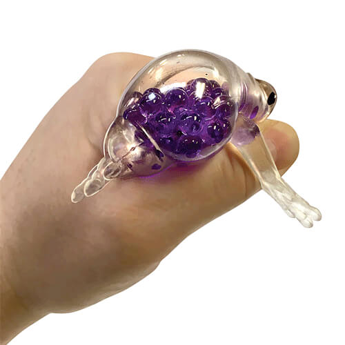 Denna söta groda är en lugnande sensorisk boll. Den är fylld med ett gäng tjocka gelbollar i dess flexibla hud. När du pressar bollen skjuter pärlorna ut och runt att göra bollen utbuktning. Det är väldigt lugnande att känna de små gelpärlorna, och det gör också ett mjukt svängande ljud att lägga till den sensoriska upplevelsen.