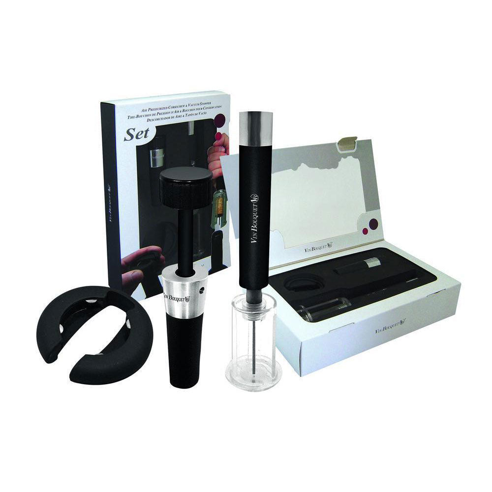 Vin Bouquet är ett komplett och professionellt utbud av vintillbehör. Produkten såväl som förpackningen drar nytta av en elegant design som glädjer alla generationer. Den här vinets presentförpackning innehåller en tryckkorkskruv, en vakuumpropp och en folieskärare.